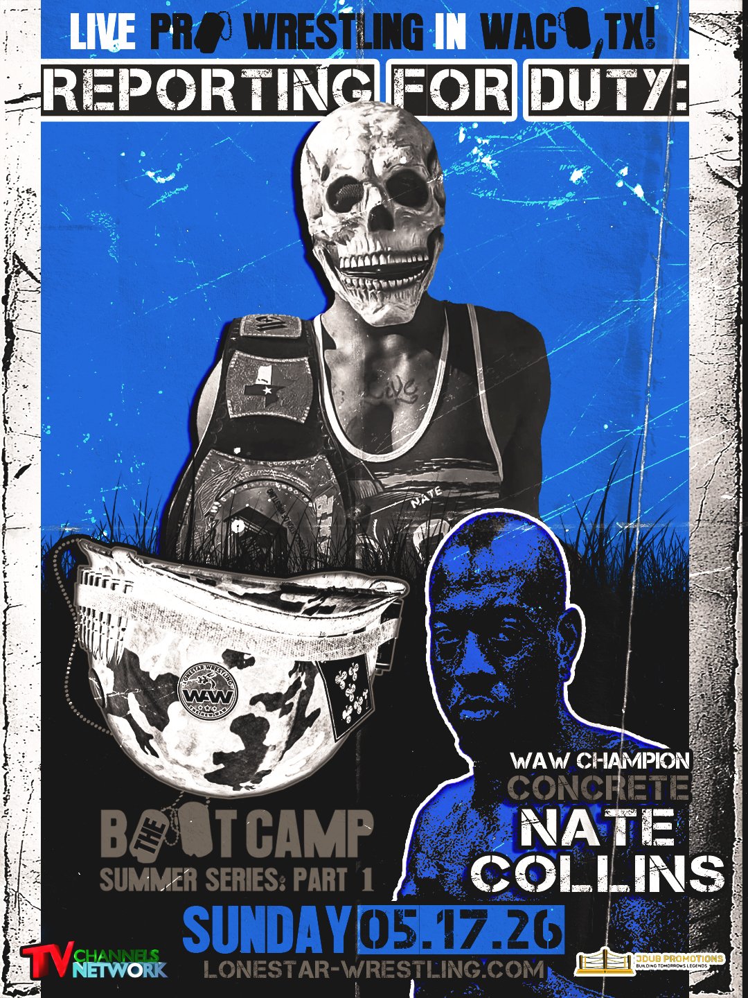 Includes General Admission Pre-Sale Ticket for our 1st Annual Lonestar Wrestling WAW Boot Camp Summer Series Event in Waco Texas on Sunday May 17th 2026! Live Pro Wrestling In Waco TX! GA seating is 1st come 1st serve so, arrive early for the best seats or be stuck in the standing room trenches!